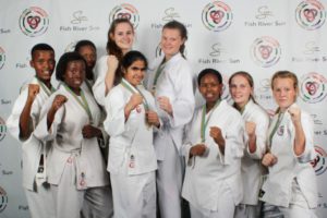 Cadet Girls Rotational Team Kumite Winners (l-R) Joza, Gauteng and ECSR